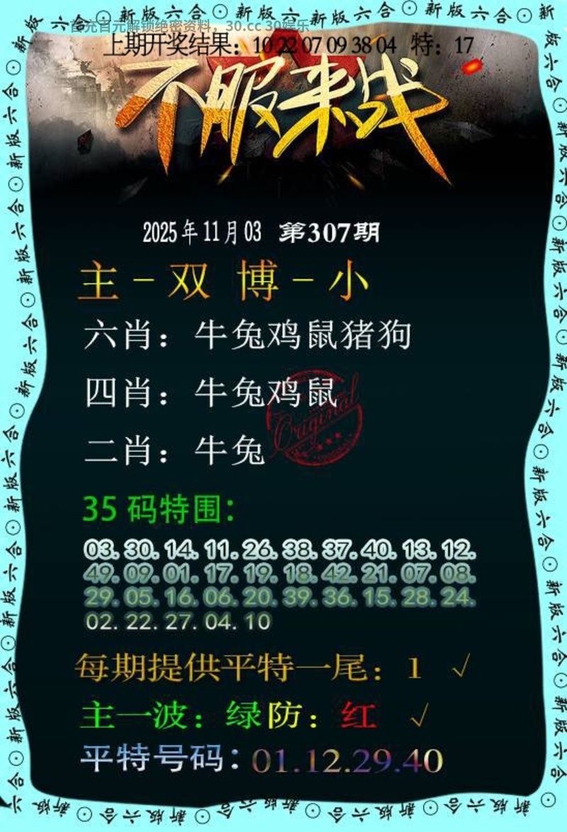 309期:【两波中特】【蓝红】开:鼠06